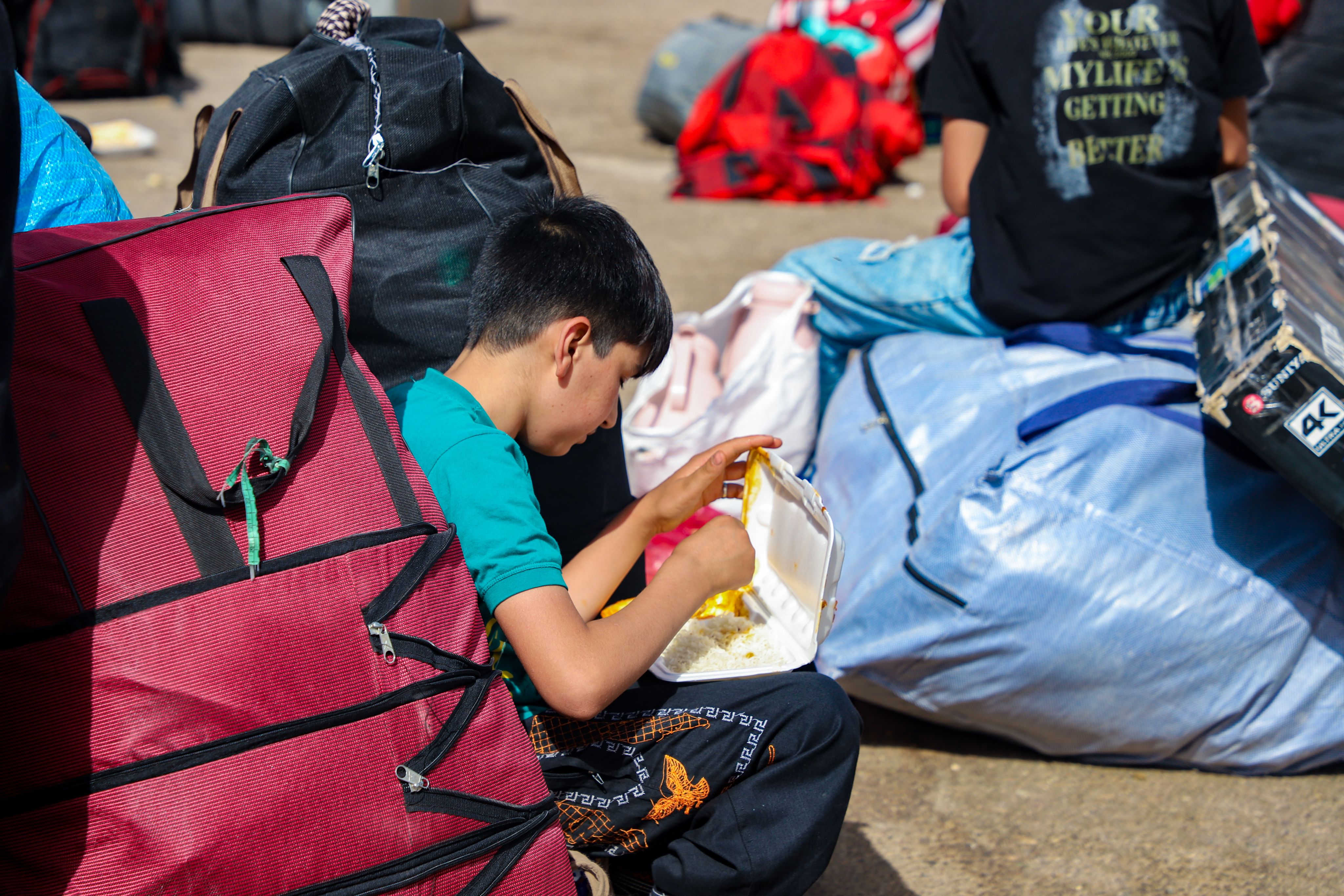 Families and individuals crowd around the entrance to tents and temporary units seeking immediate treatment or support with basic supplies, while others ask for support to get SIM cards to contact family members still in Afghanistan – though some report having had their phones taken en route to the border. As we talk to some of them, and to officials, it’s clear that thousands arrive at the border daily with little but complex needs, and yet the capacity of existing support is around 500 people. We hear reports of young people returning with nothing being forced into near-servitude by unscrupulous businesses, in the hope that they will get a SIM card or phone or money for travel after serving their time.