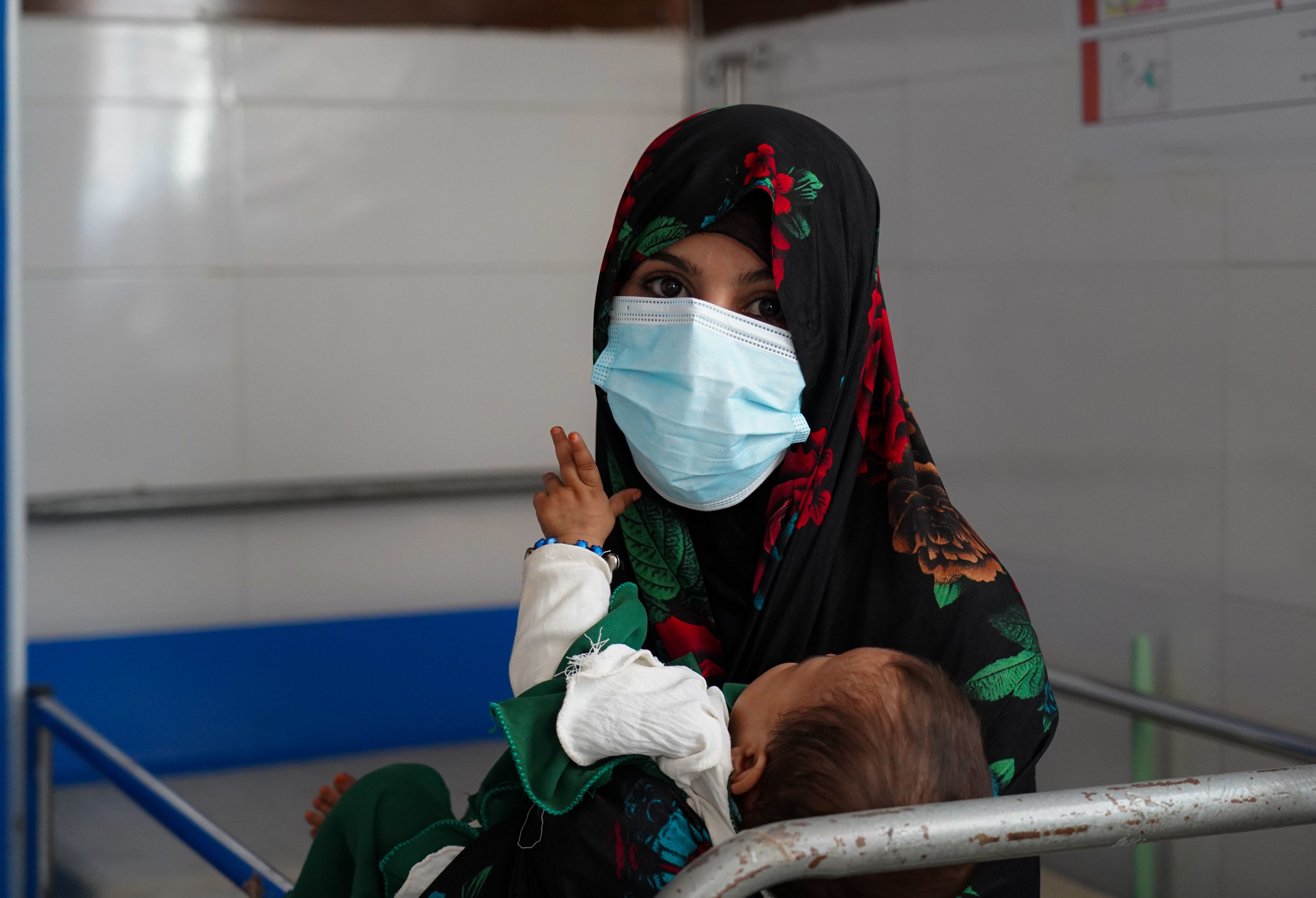 Mothers and their children wait in line at a World Vision clinic, located in a remote part of Herat province, to receive lifesaving treatment for malnutrition.