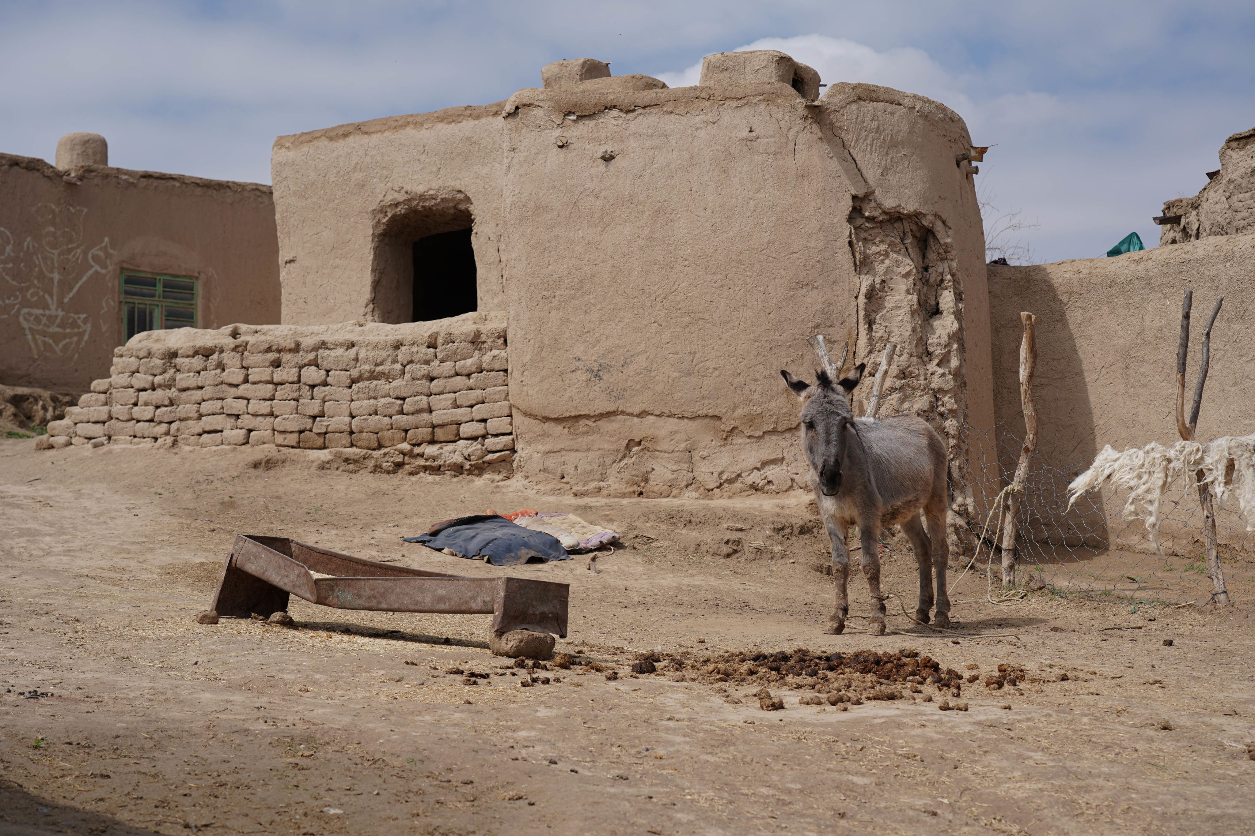House in rural Herat, Afghanistan – families build their homes from sun-dried bricks of mud, clay, and straw. Flat roofs provide little protection against earthquakes and harsh weather.