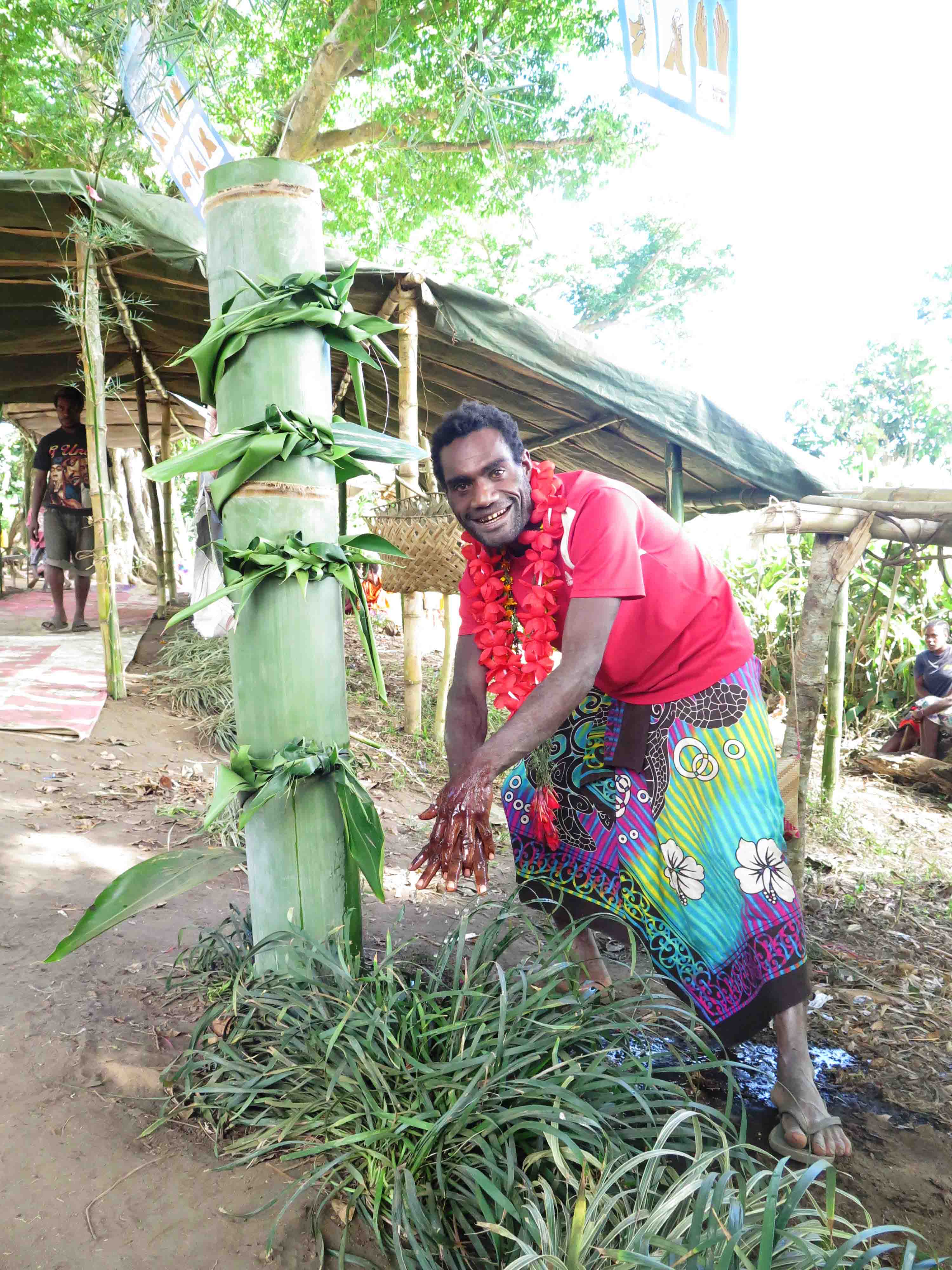 A community member from Yelkis village in southwest Tanna has created an innovative tippy tap using bamboo instead of the usual plastic bottles. Last week, World Vision held a celebration in Yelkis to acknowledge the inventor and celebrate with the community.