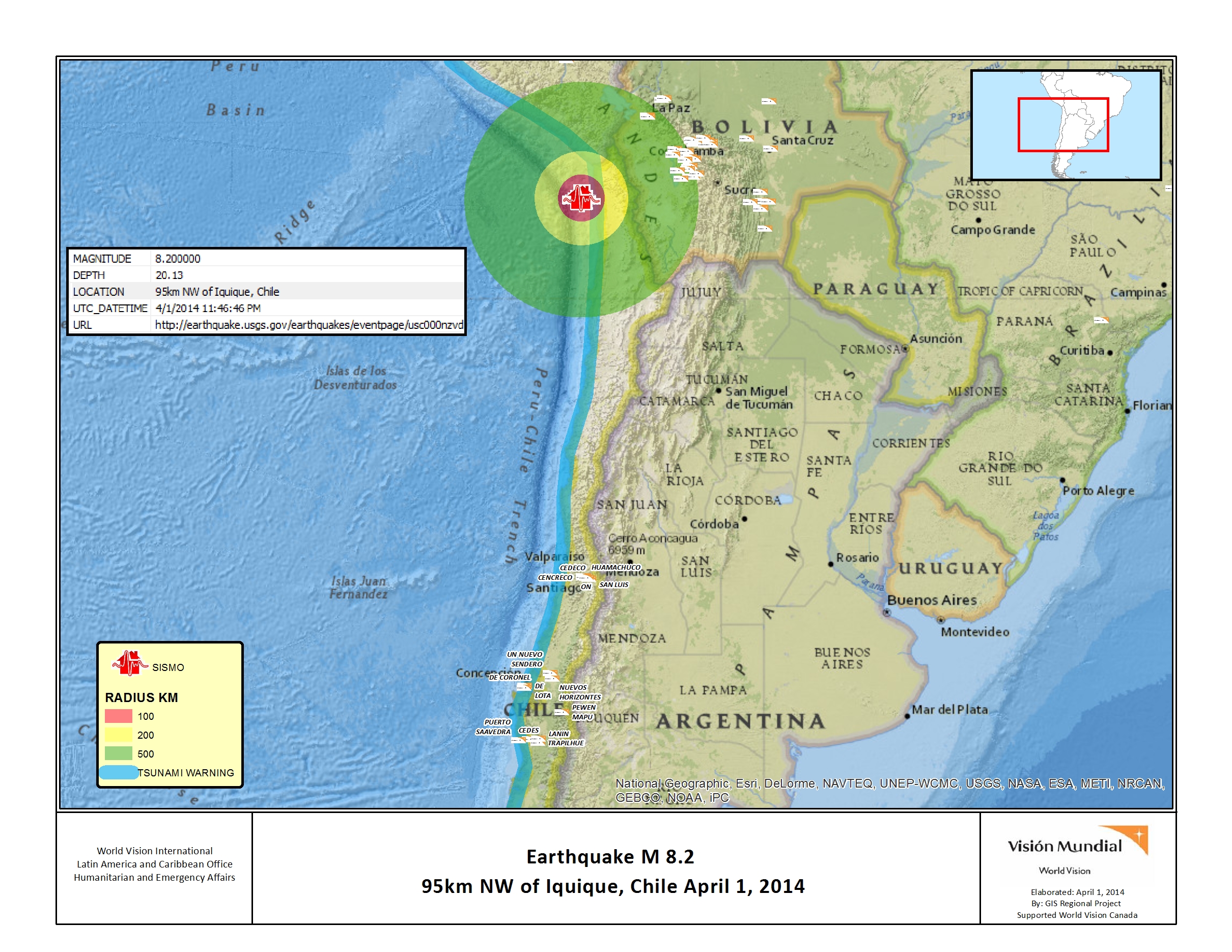 SANTIAGO, Chile (April 2, 2014) — World Vision teams are working with the government and partners in the worst affected areas to assess damage from the 8.2 magnitude earthquake that shook parts of Chile last night and spurred a country-wide tsunami watch that forced much of the coast to evacuate.