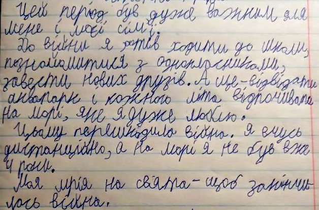 "These last four years were super hard for me and my family. Before the war, I really wanted to go to school, meet my classmates, and make new friends. Also, I wanted to go to a water park and go to the sea every summer because I love the sea so much. But the war stopped all of that. Now I learn from home, and I haven't been to the sea for four years", shares Maksym, 10, from Mykolaiv, now living in Kyiv.