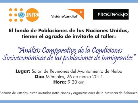 Neiba, provincia Bahoruco.- El Fondo de Población de las Naciones Unidas (UNFPA), la ONG británica Progressio y Visión Mundial propiciaron un encuentro de socialización en Neiba, provincia Bahoruco, del informe “Análisis comparativo de las condiciones socioeconómicas de las poblaciones de inmigrantes, descendientes de inmigrantes y población nativa”, redactado por la Unión Europea y la UNFPA a partir de la Primera Encuesta Nacional de Inmigrantes en República Dominicana ENI-2012.