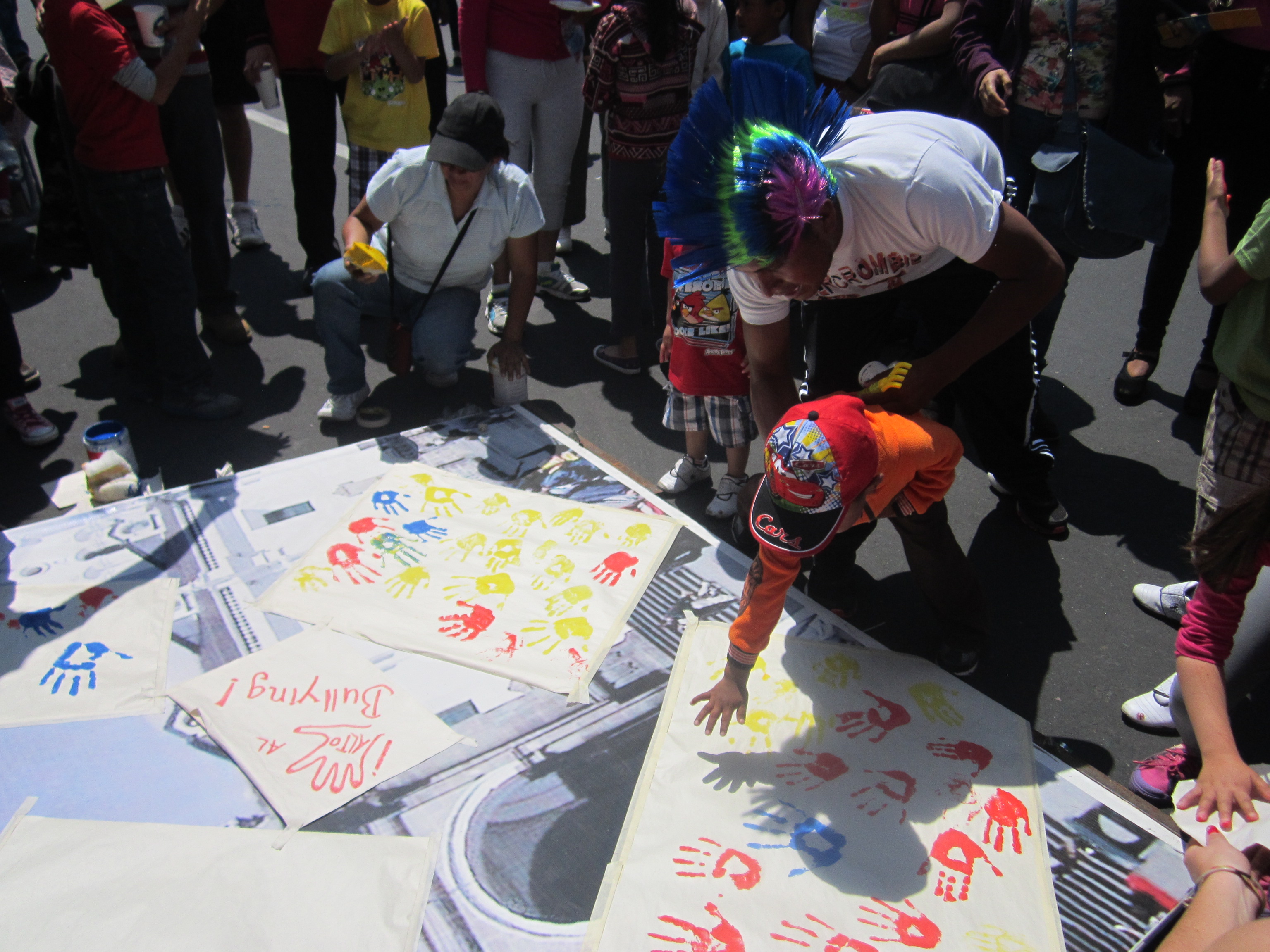 Ocho monigotes gigantes representaron dos escenas acerca del respeto entre pares, ante las diferencias. Durante la exposición de los “años viejos”, varios niños y niñas junto a sus padres plasmaron la huella de su mano en carteles, como una muestra de adhesión simbólica contra el acoso escolar. Los medios de comunicación locales contabilizaron más de 800 mil personas que acudieron al evento.