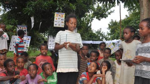 As of September 2014 World Vision Ethiopia targeted and implemented Literacy Boost program in 38 Woredas in Oromiya and Amhara Regions reaching 136,500 children (65,267 girls). In this program, World Vision provided different titles of trainings to stakeholders, government staff, community leaders, reading camp leaders, publishers, etc. A total of 287 teachers were trained to facilitate school level interventions and support children’s reading skill in the classroom. And 12,553 parents were equipped and supported children's reading at home. Further, 135 new children reading book titles were developed in mother tongue/local language: Afan Oromo, Amharic and Agewegna and distributed in 414,250 copies.