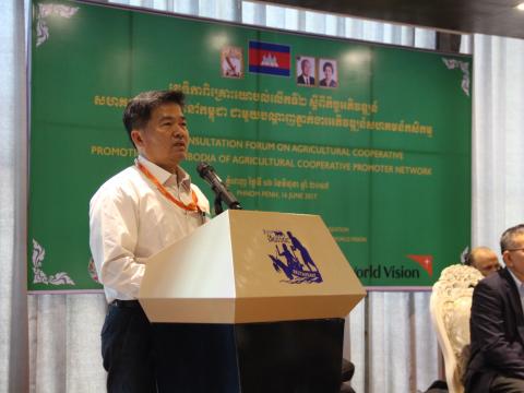 Attendees began filtering into the room to register and get seated for the opening ceremony at 8am. Representatives from the main organizers of the forum, World Vision, GDA (General Directorate of Agriculture), and DGRV (German Co- Operative and Raiffeisen Confederation), all shared opening remarks talking about the need for this focus on improving Cambodia’s agricultural industry, as it is still the leading industry in Cambodia, affecting the population’s livelihood. This is especially vital in relation to the economic trend in the country; all key stakeholders who are working with the AC must build the capacity of the AC steering committee so they are able to produce standard products for the ASEAN market. There were countless nods of agreement as the speakers shared both the struggles that the AC faces and all the progress that has been made in just a year.
