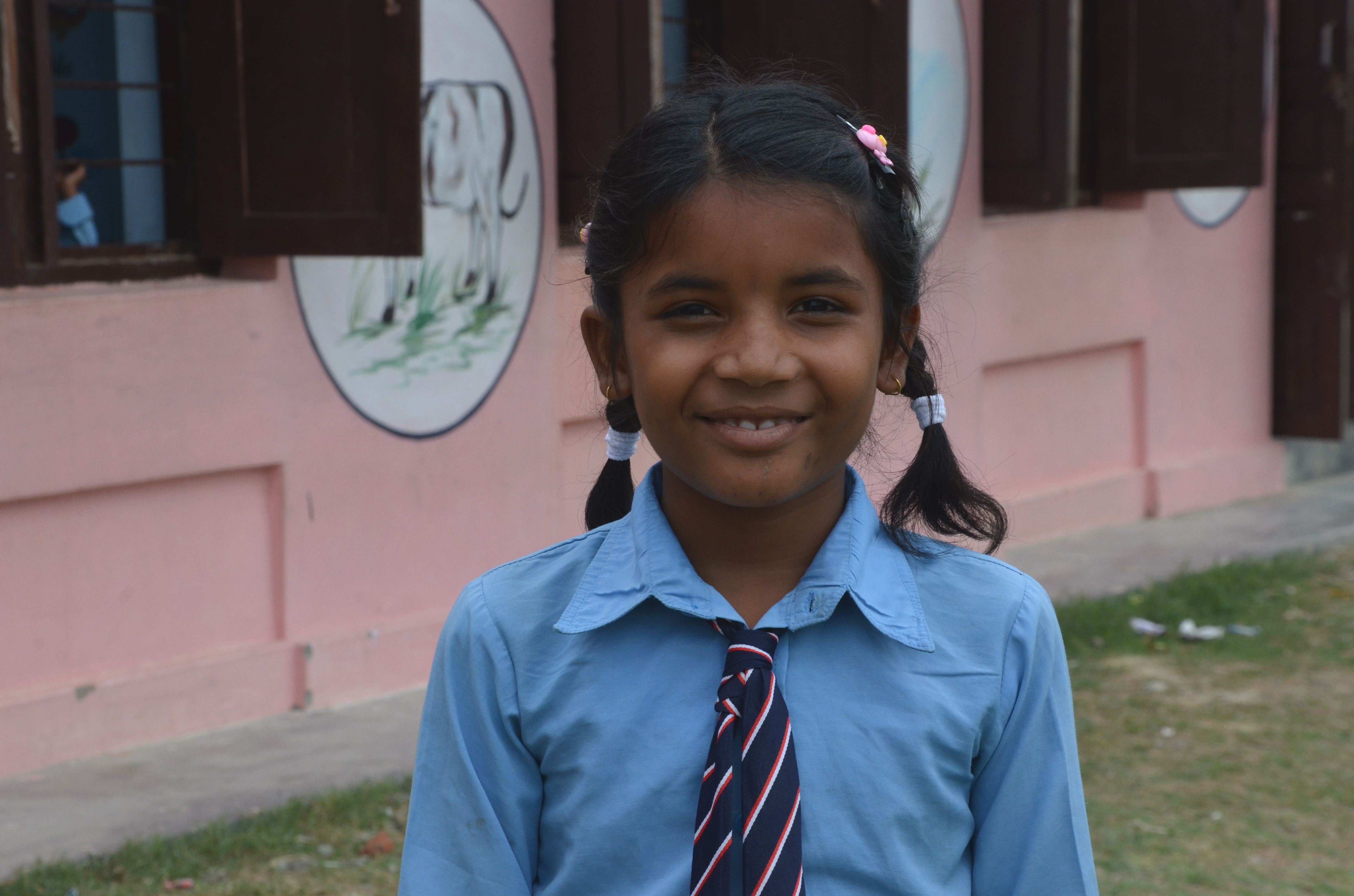 Kamana, 12, cheerfully explains, “Before the retrofitting was done our classroom walls had several cracks and it appeared unsafe and fragile but now that building has been made safe. Now we get to study without any fear.”