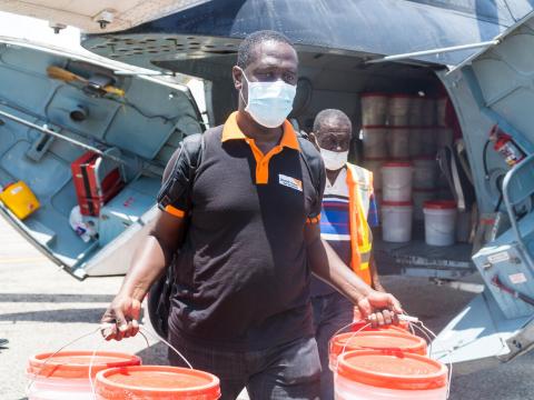August 24, 2021. World Vision sent a five-truck convoy on Monday 23, and earlier this week sent via helicopter essential goods to ensure the survival of thousands of families who lost their homes to the devastating 7.2 earthquake that rattled Haiti on August 14.