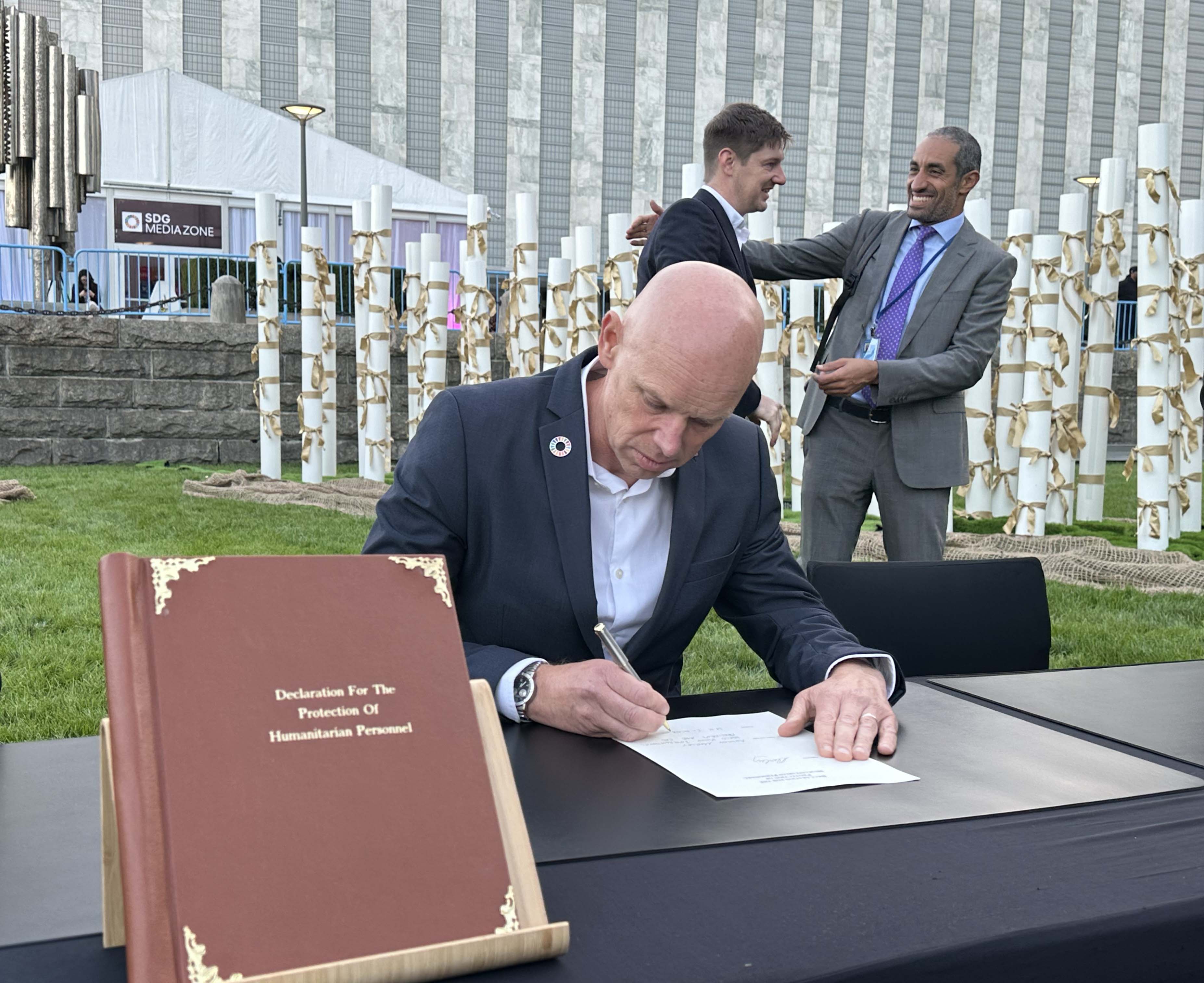 “Every aid worker represents bold hope, courage and compassion in the face of crisis, and every lost life is a tragedy beyond words. This Declaration for the Protection of Humanitarian Personnel marks a critical milestone in global efforts to safeguard those who risk everything to serve others. Humanitarian workers are stepping up in the world's most dangerous places to bring hope for the most vulnerable," said Andrew Morley, World Vision International’s President and CEO, who attended the declaration ceremony in New York. "I urge all parties to conflict—State and non-State alike—to uphold their obligations under international law and ensure the safety of humanitarian staff. Together, we must turn political will into practical action that protects lives and preserves humanitarian access.”