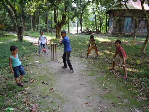 Picture caption: Ruji and his friends playing cricket in Bangladesh.