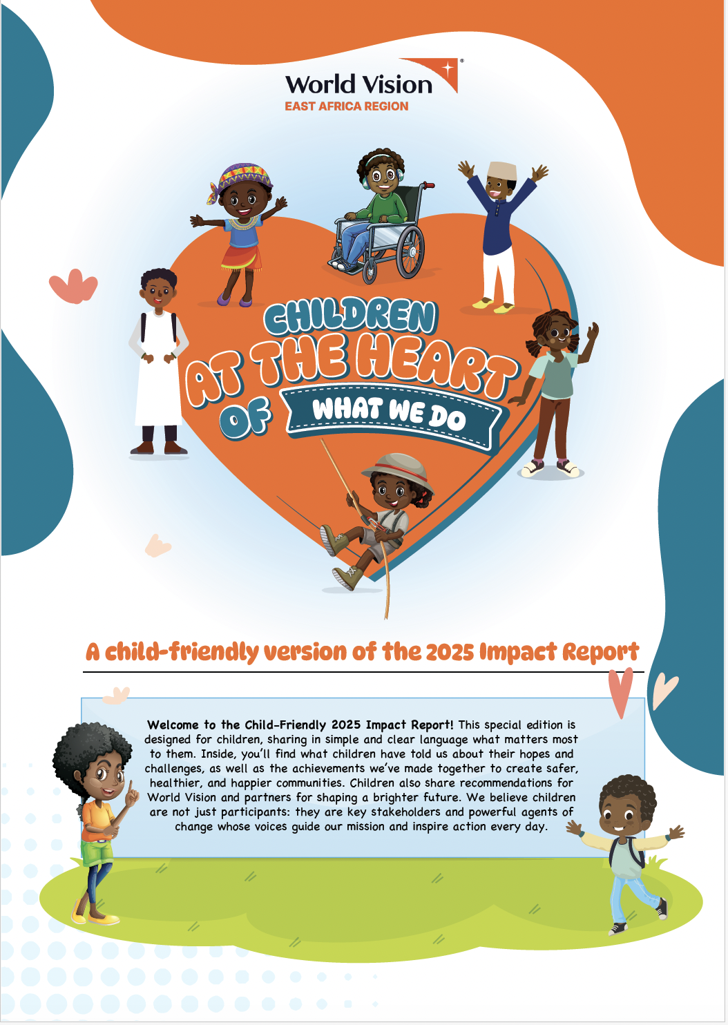 We are thrilled to present our World Vision East Africa child-friendly impact report for 2025, which children were part of creating. Children are key stakeholders and agents of change. This special edition is designed to be accessible and engaging for children, highlighting the incredible work we've done together to make a difference in their lives and communities.