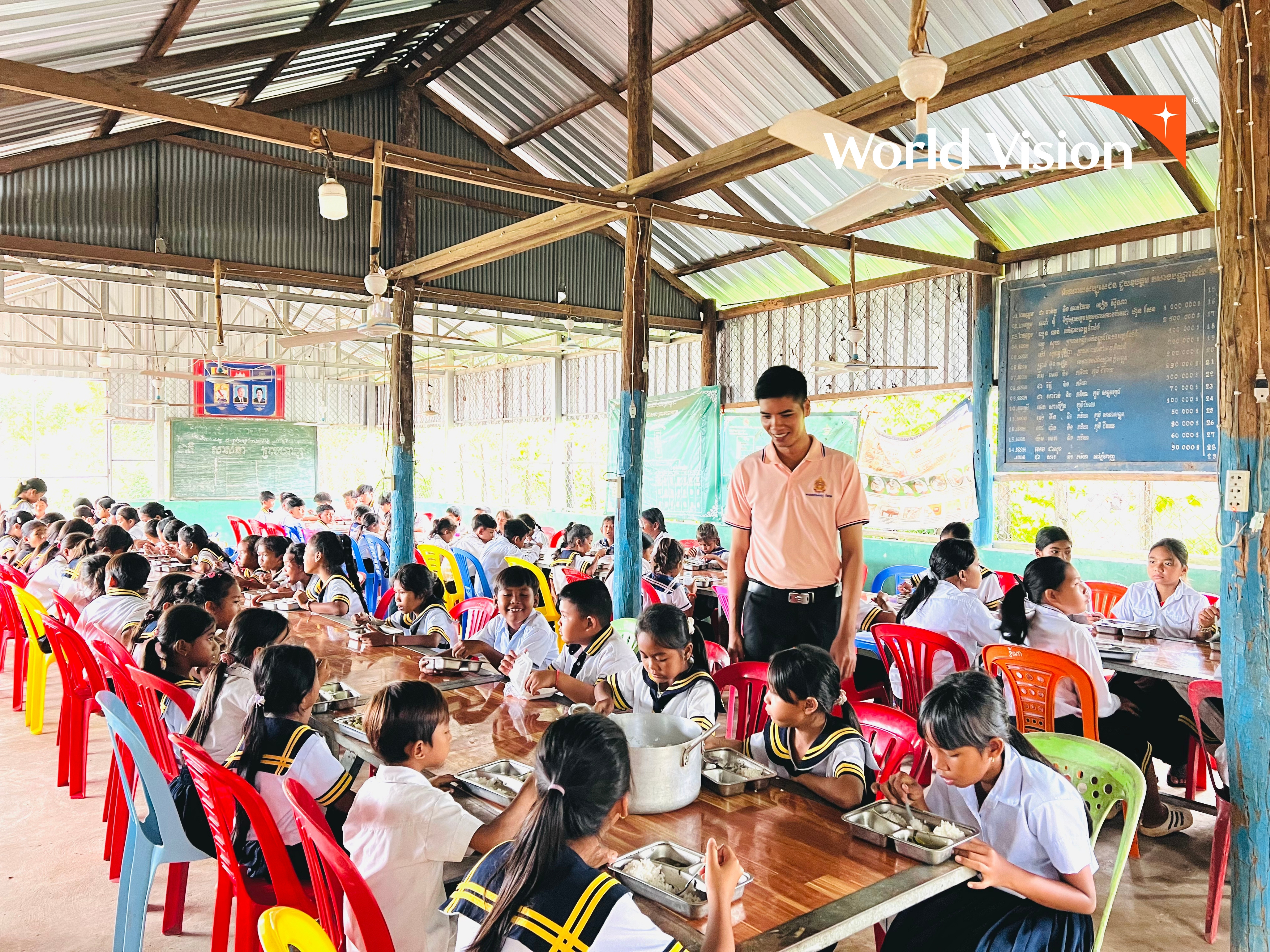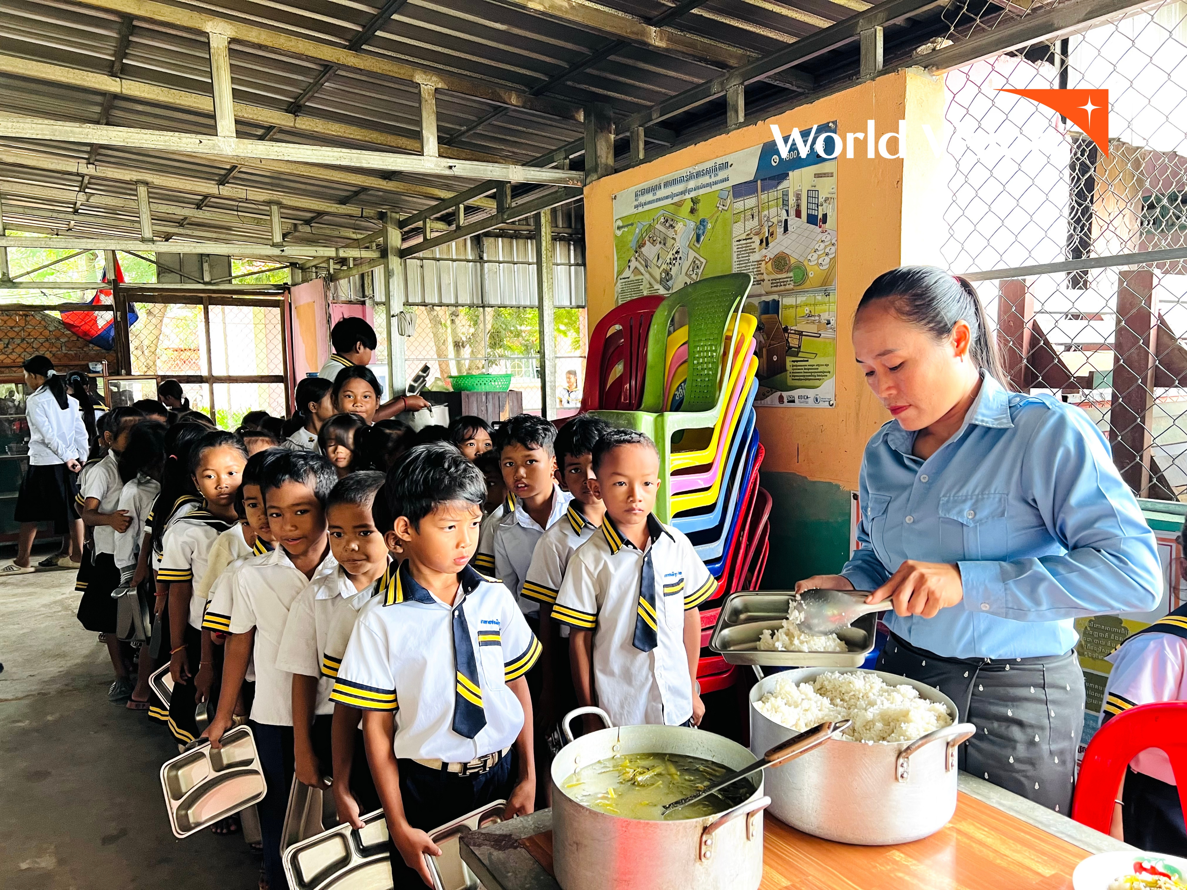 Neang is one of the many unsung heroes behind Cambodia’s School Feeding Project, implemented by World Vision in partnership with the World Food Programme, and funded by the United States Department of Agriculture. The project reaches 16,077 students (7,831 girls) across 75 primary schools in three districts, providing daily hot meals, promoting school gardens, improving WASH facilities, and raising awareness on nutrition, hygiene, food safety, gender equity, and local capacity building.