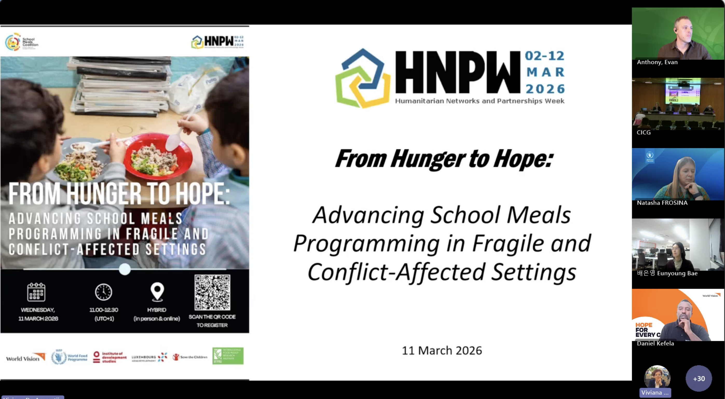 At the Humanitarian Networks and Partnerships Week (HNPW) 2026, World Vision demonstrated how child-centred, evidence-driven approaches can deliver greater impact, efficiency, and resilience at a moment when humanitarian needs are rising and resources are under intense strain. Across seven high impact sessions, in-partnership with institutional donors like Luxembourg Aid & Development, UN agencies like WFP, FAO, UNDP, UNICEF, clusters and networks like School Meals Coalition, Food Security Cluster and the Cash Learning and Partnership (CALP) Network, research institutes like International Food Policy Research Institute (IFPRI), and the private sector, World Vision representatives helped shape global conversations by bringing practical field experience, strengthening partnerships, and calling for more focus on outcomes for children and communities.