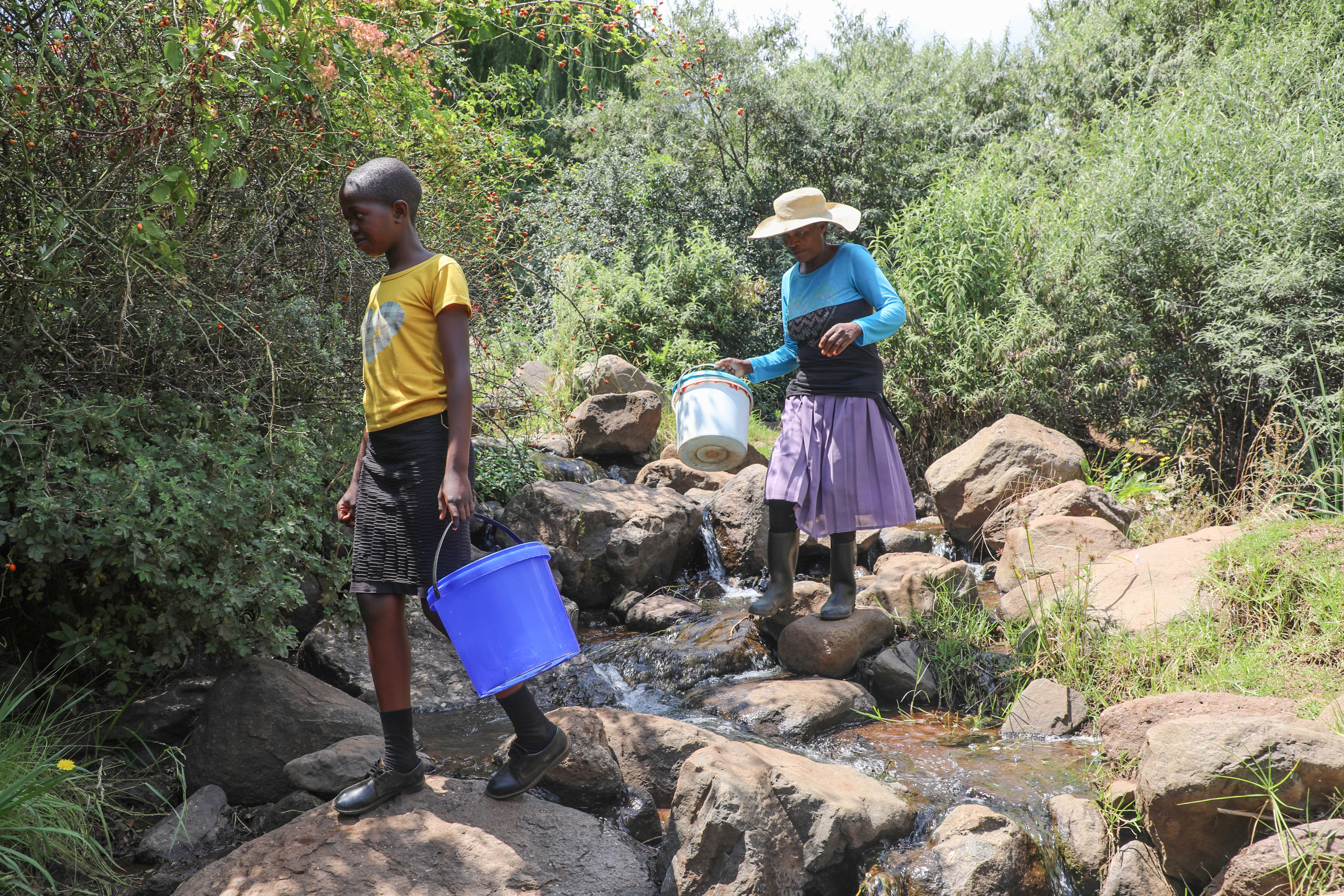 ‘Malieketseng and Senate walk through the forest and cross a small river to fetch unsafe water from an uncovered well
