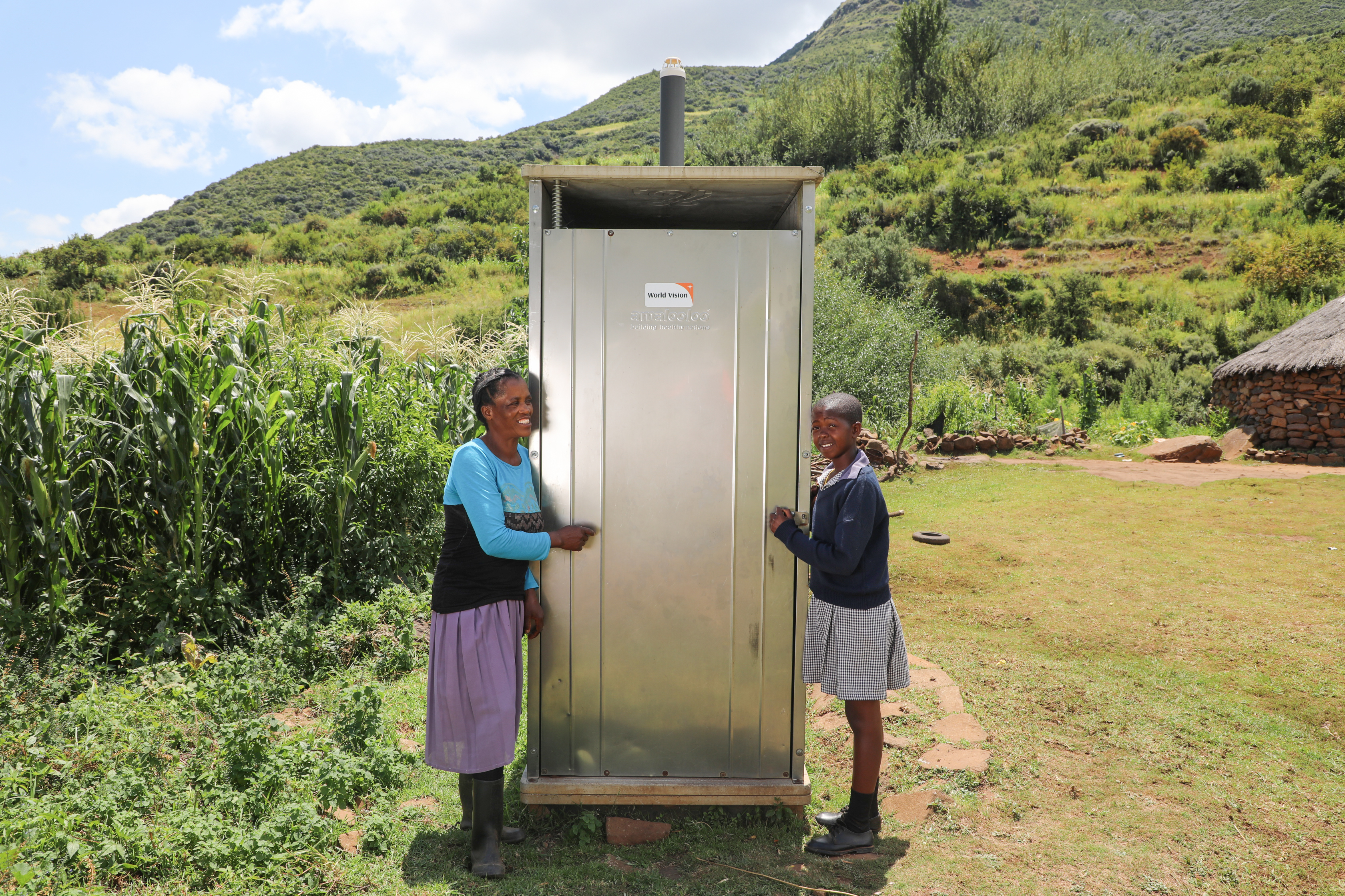 Through its Water, Sanitation and Hygiene (WASH) Program, World Vision supported Phamong Village with a new water system, installing eight community taps. Each household, including ‘Malieketseng’s, received an Amalooloo toilet.
