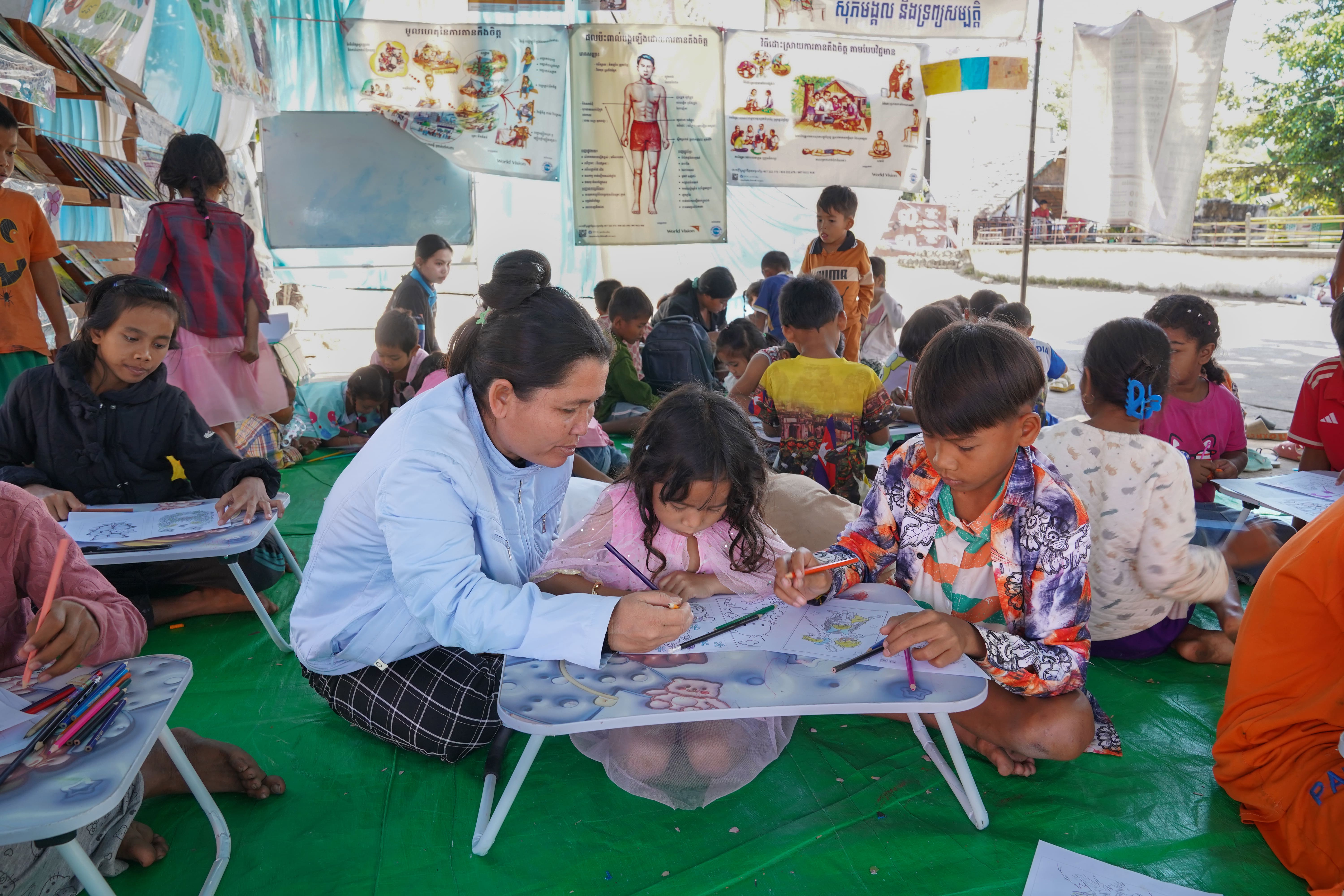 To further support children and adolescents affected by conflict, TPO, in collaboration with World Vision Cambodia, has established peer-to-peer support activities and facilitated Child-Friendly Spaces (CFS). These spaces provide safe, supportive environments where children can express emotions and process traumatic experiences through drawing, play and structured activities. In total, 54 Child-Friendly Spaces have been set up, helping children focus on the present moment, reduce fear, boredom and tension, and strengthen communication and social interaction with peers. Through this joint response, 3,241 displaced people have participated in psycho-education sessions, reporting improved understanding of stress reactions and increased use of healthy coping mechanisms.