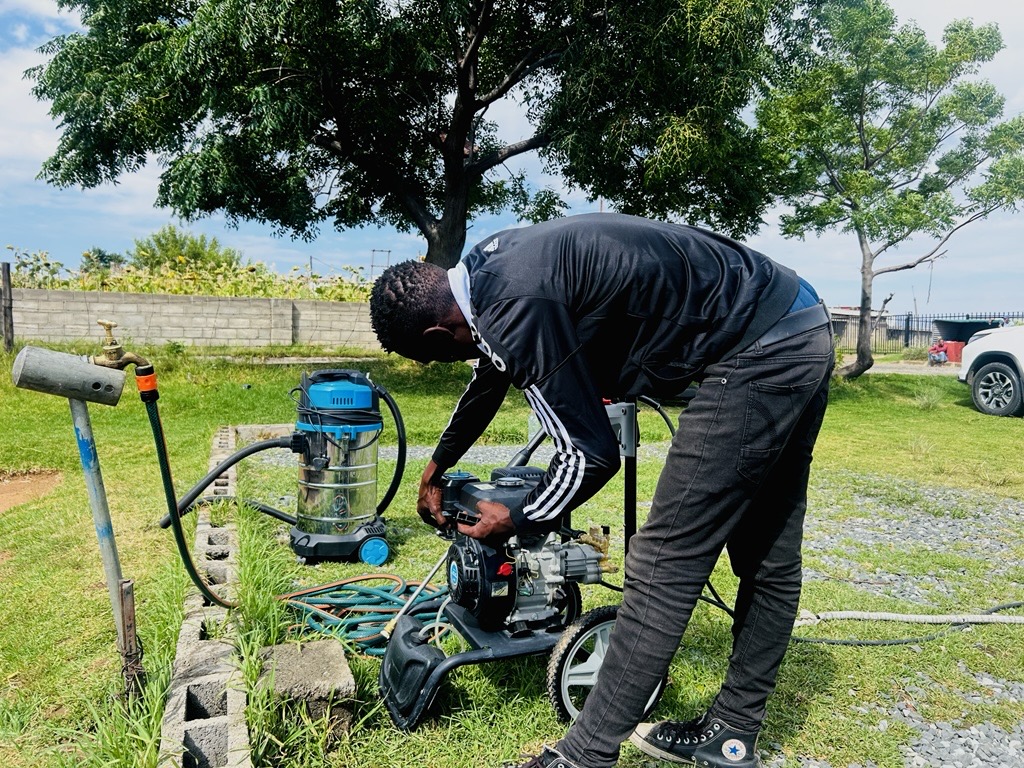 Through the project, Nkoka received car wash equipment—a simple but life-changing intervention. “When they asked me what I could do to earn a living, I knew I needed something practical,” Nkoka said. “The car wash gave me back my dignity.”