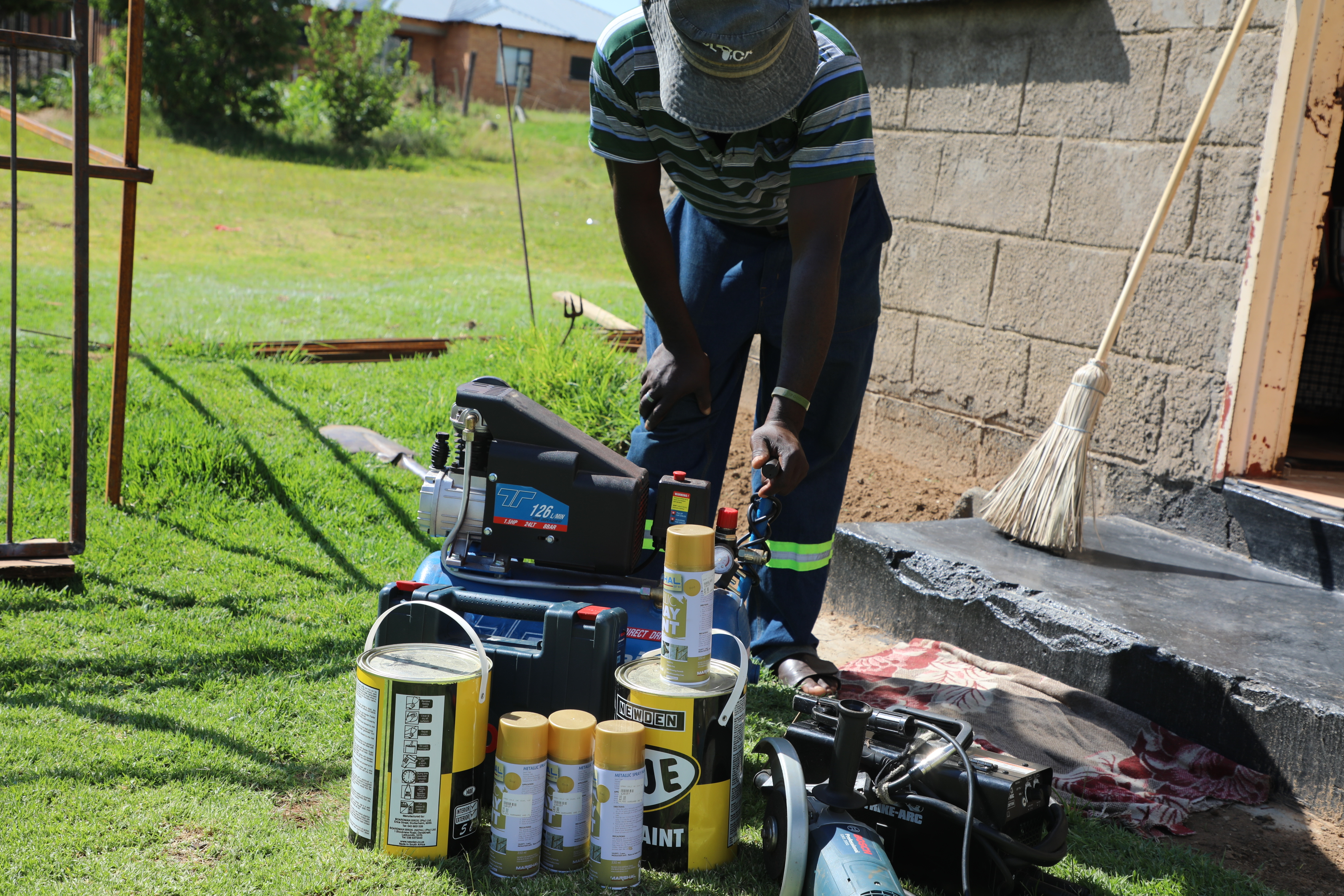 Through the project, Tseliso received welding equipment in December 2025, including a grinder, welder, compressor, steel paint, and spray paint—tools that allowed him to start a business of his own. “When I received the equipment, I felt like my life was starting again,” Tseliso said with relief.