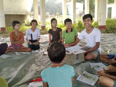 Later, Myo became a leader of the Children’s Savings Group. This leadership role allowed him to meet new friends, improve his communication skills, and learn from others. The children in the group were happy because village volunteers shared valuable knowledge such as child protection, rights, and life skills. In addition to these educational sessions, the group also organized fun activities such as playing games, singing songs, and dancing.