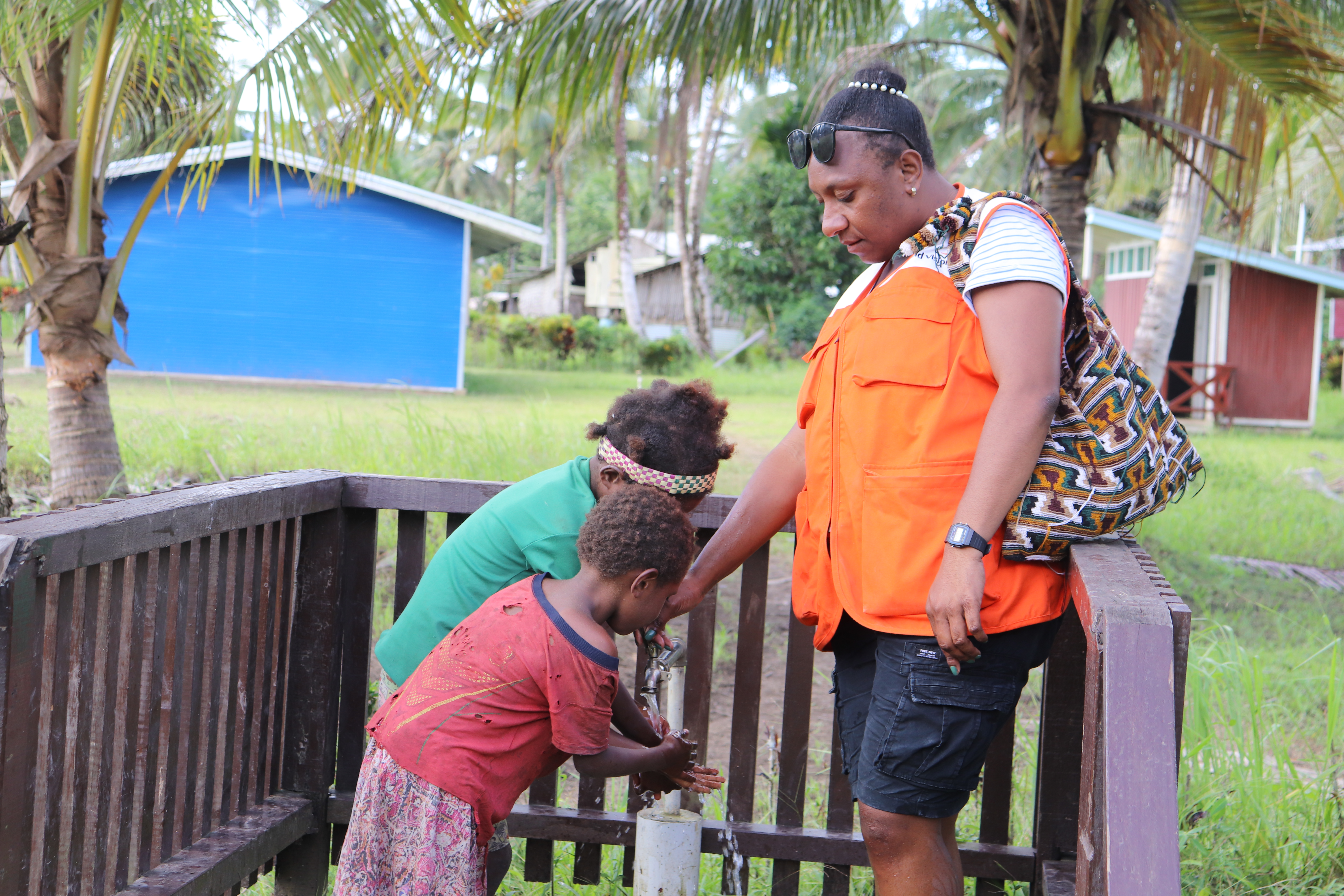 Moved by these issues, World Vision, with support from the Australian Government through DFAT, stepped in to help. A bore water pump was installed on higher ground at the center of the village, safely away from the flood-prone river along with two 9,000 litre tanks used for rain-water catchments, providing a reliable, clean water source.