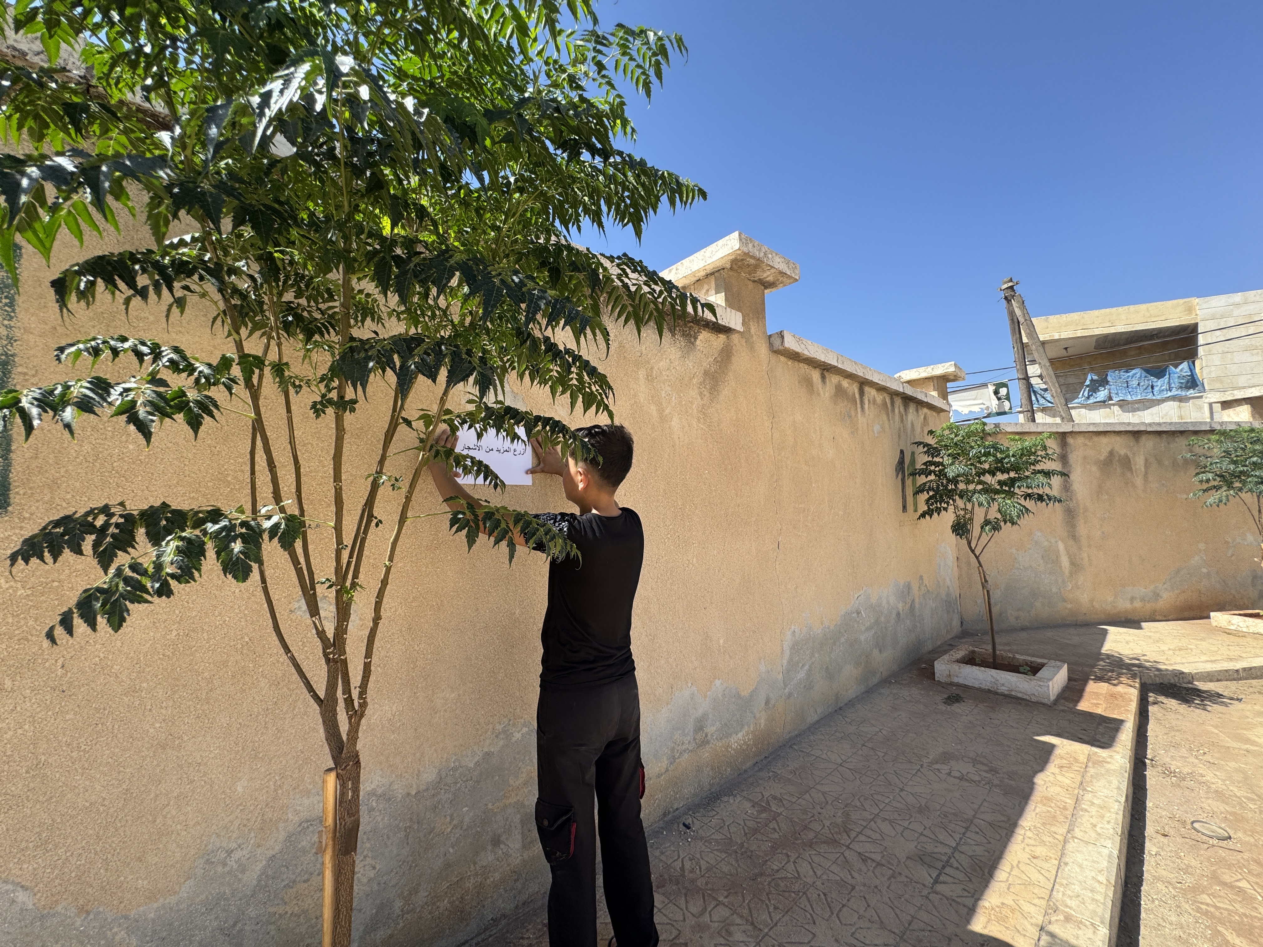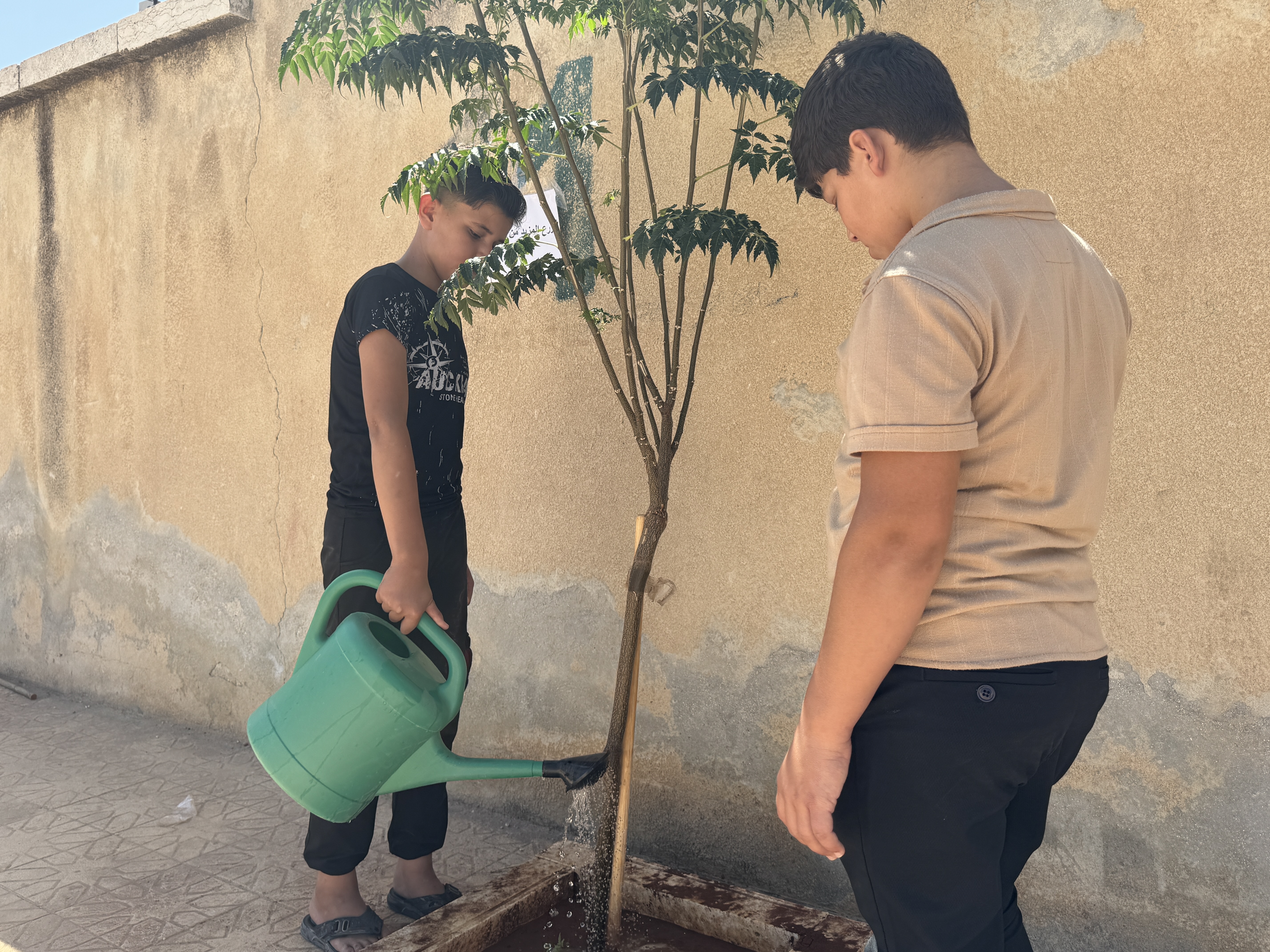 With a renewed sense of purpose, Youssef eagerly joined the tree-planting activities organized by World Vision Syria Response. Alongside his friends, he planted young saplings in the schoolyard, caring for them each day—watering, loosening the soil, and keeping the area clean. To Youssef, these trees were more than just greenery; they were a living shield against desertification and climate change.