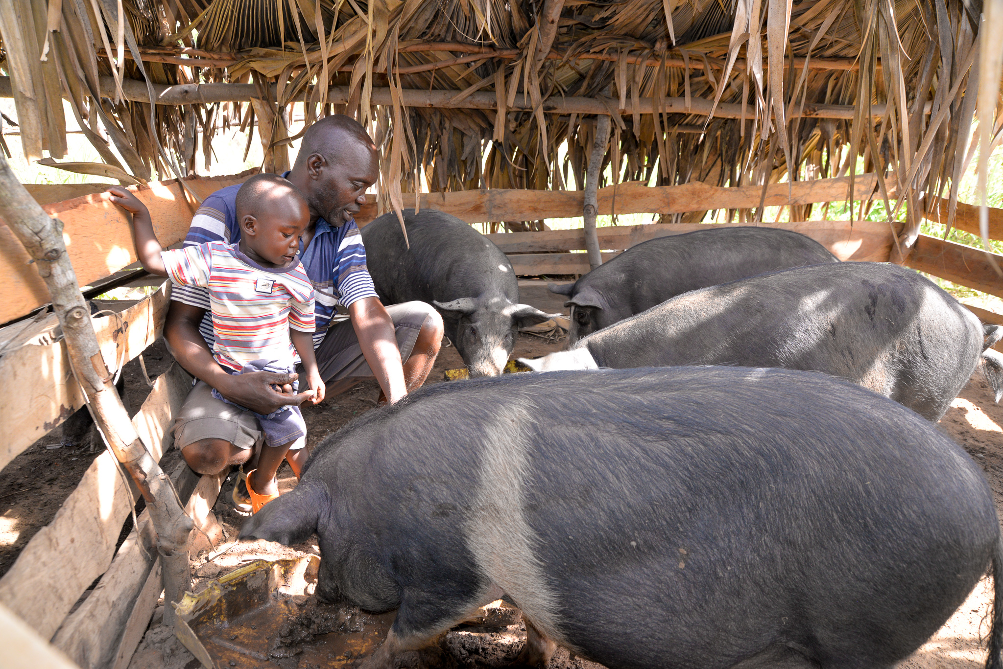 “During the training, I realised that I didn’t have to start with much but to use what I already had. The two piglets were my starting point”, he says. “I took good care of them and when they matured, I sold the boar at 450,000 shillings (about US$127) and used part of the money to buy three more piglets, and the rest of the money helped to meet my household needs.”