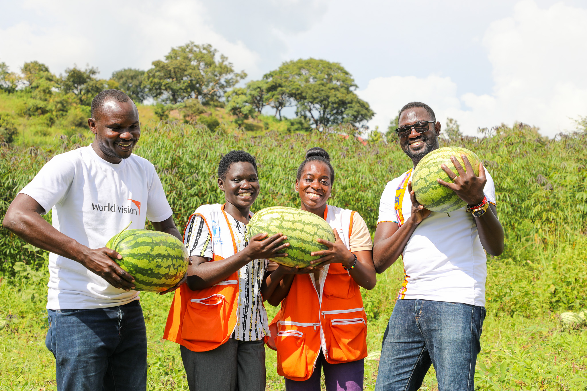 Behind him, World Vision staff follow with admiration, capturing photos and noting his words. They watch as Mawa explains how he nurtures the vines, and how this garden has become both his livelihood and his hope.