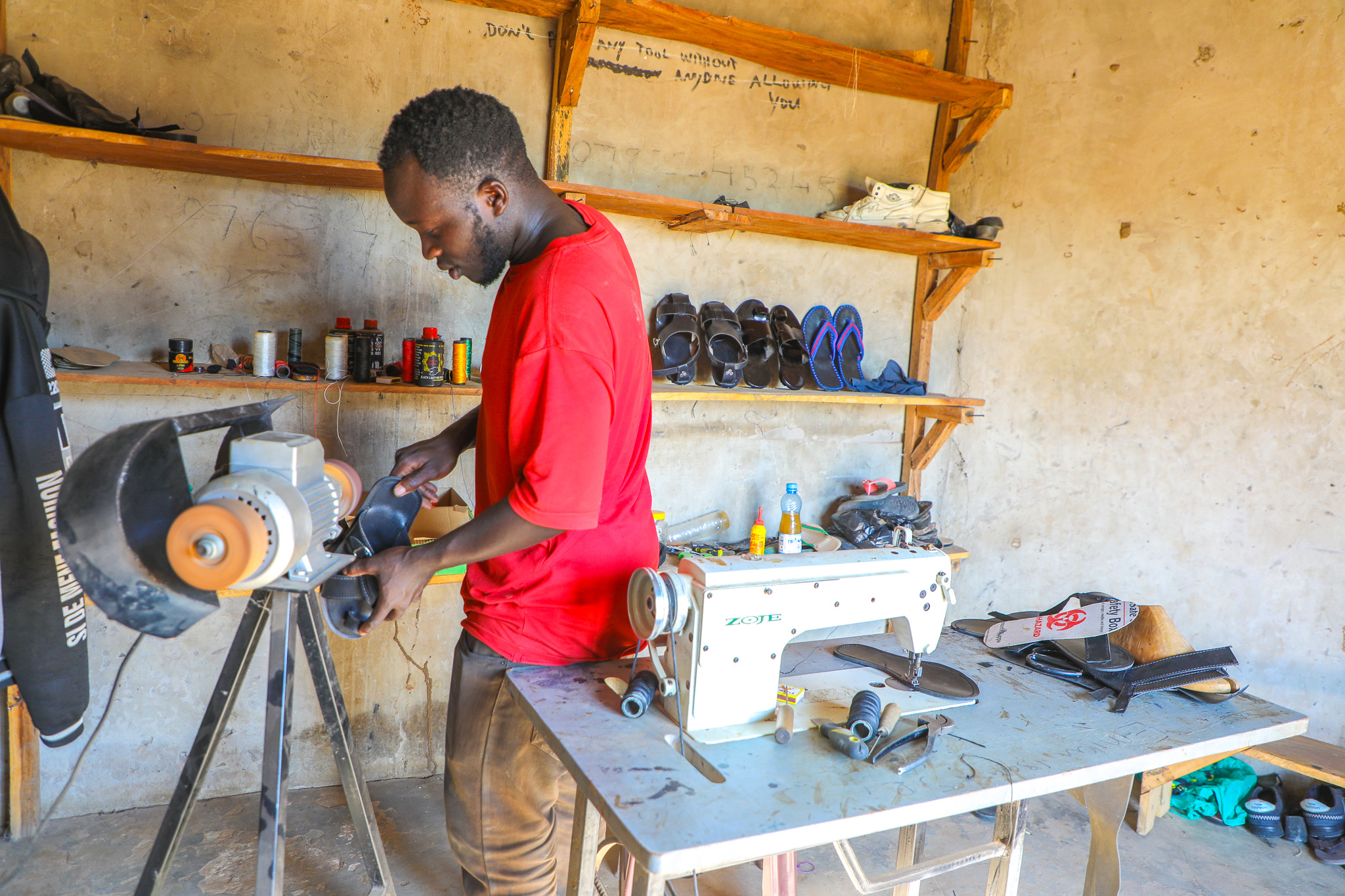 When Isaac completed his senior four in 2020, he wanted something to do with his hands. “When World Vision offered training in shoemaking in my community, I knew this was an opportunity for me to build something for myself,” Emmanuel recalls.