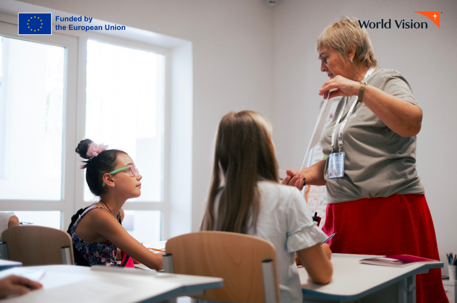 Sofia and a dozen other children just finished their Ukrainian language lesson. It is summer holiday season, but Sofia, one of the top students in her class, still comes to this educational center every other day. For her these catch-up classes supported by World Vision and funded by the European Union, are a chance to stay ahead in her studies, but mostly to socialize and stay occupied during the summer.