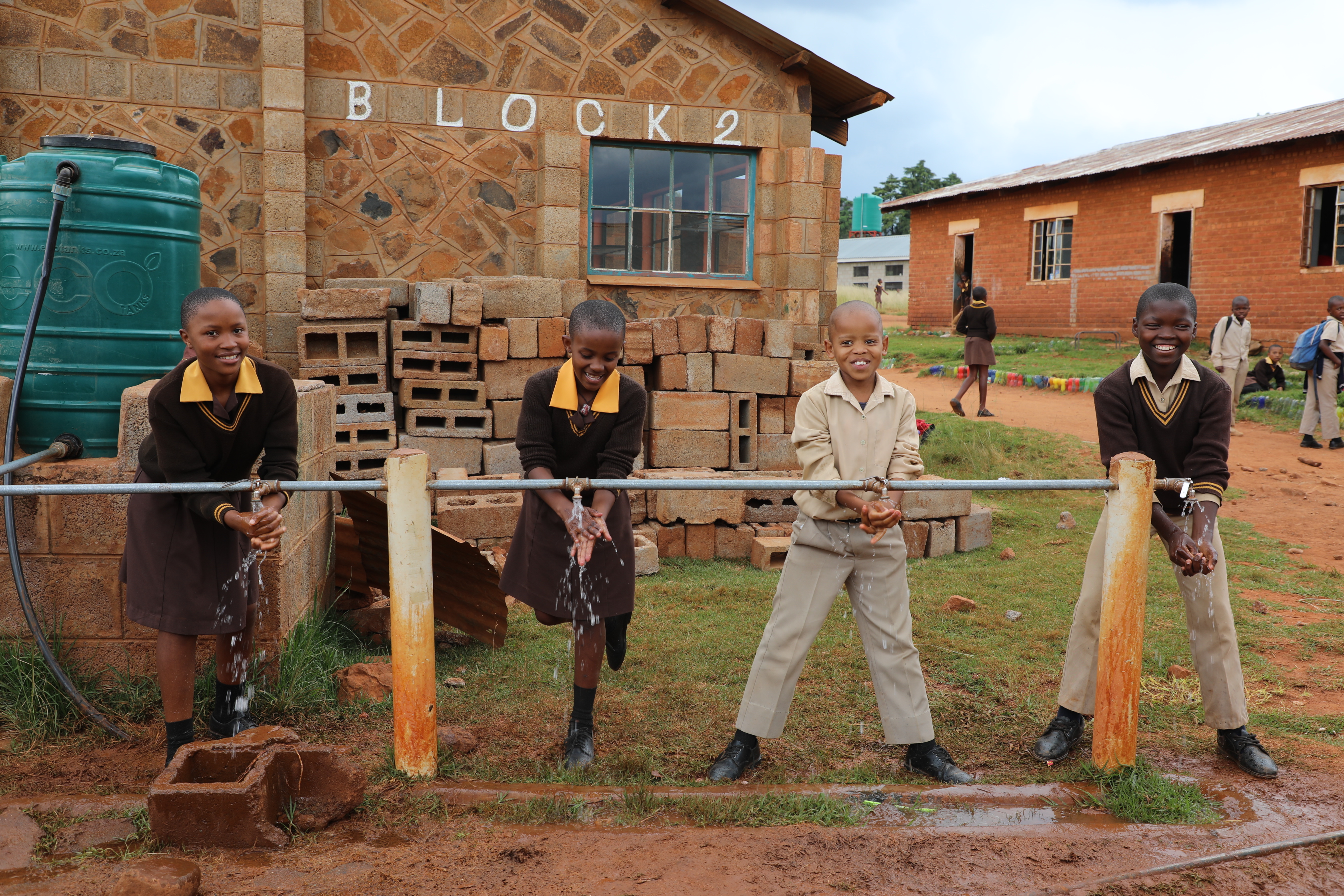 With access to clean and safe water, learners happily practise handwashing at their school