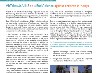 As part of our contribution to making a significant impact on the well-being of children World Vision has launched a five year global campaign to ending violence against children, in all its forms in alignment with the Sustainable Development Goals (SDGs).